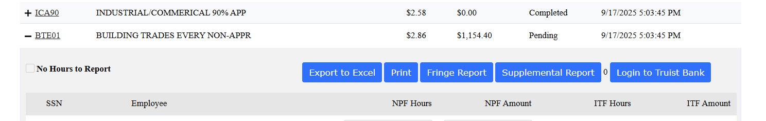 6. Expand the BTE01 Building Trades Every Non-Appr group for the month and enter the hours for each employee that is not an apprentice. If there are apprentices, report them in their appropriate group.