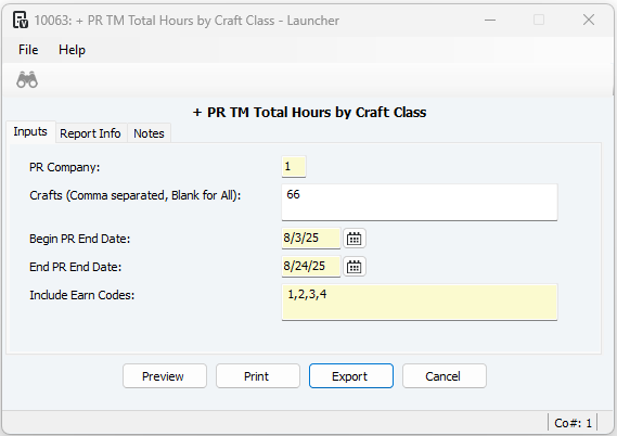 - Download and save the =PR TM Total Hours by Craft Class report for Craft 66.
