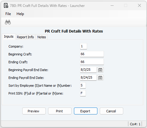- Download and save the PR Craft Full Details with Rates report for Craft 66.