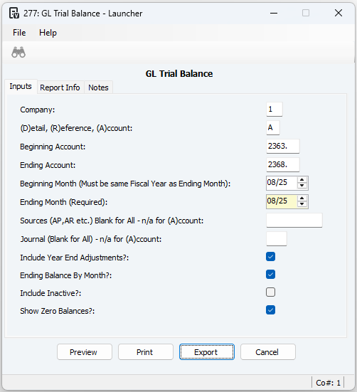 - Download and save the GL Trial Balance for GLs 2363-2368.