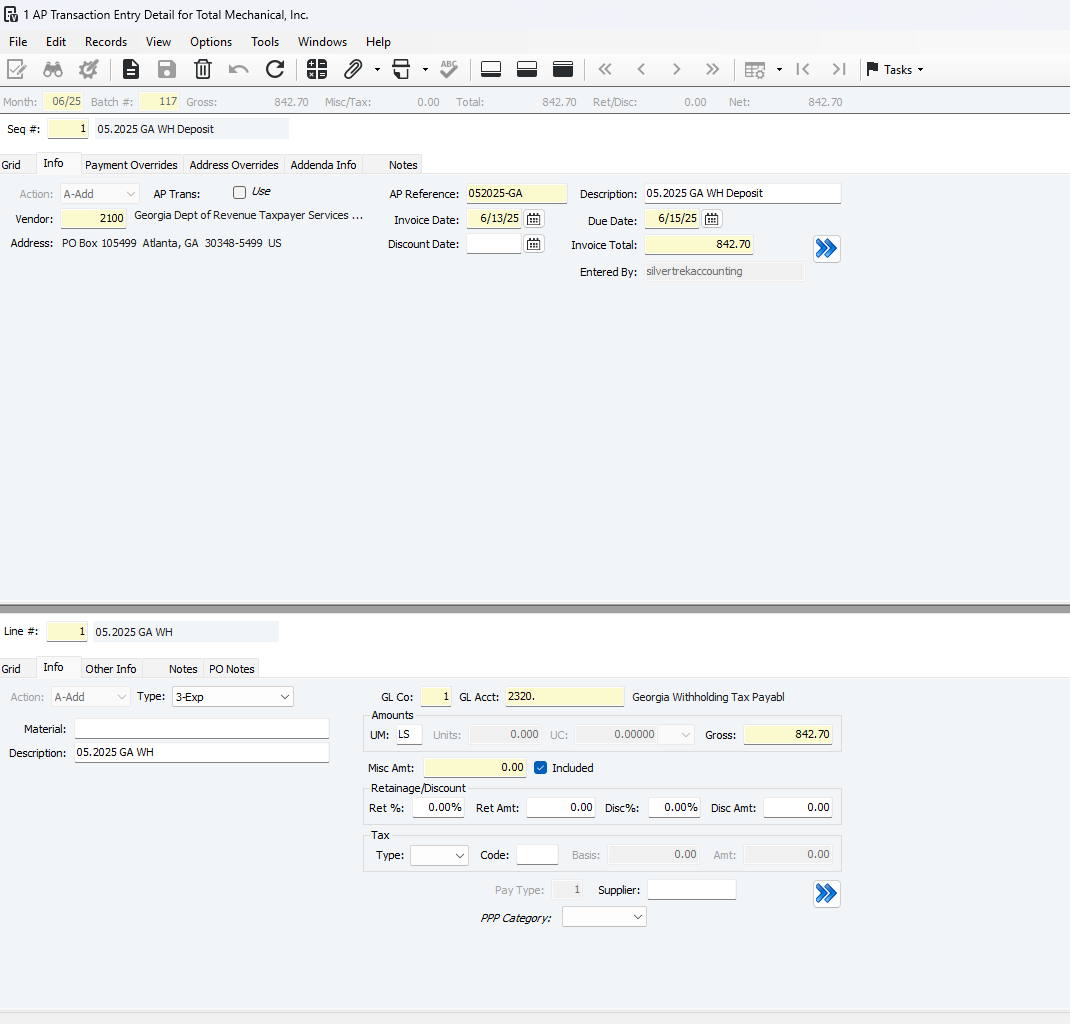 - Total Mechanical > Administrative > Government > Georgia > {YEAR} > Withholding > Tax Deposits